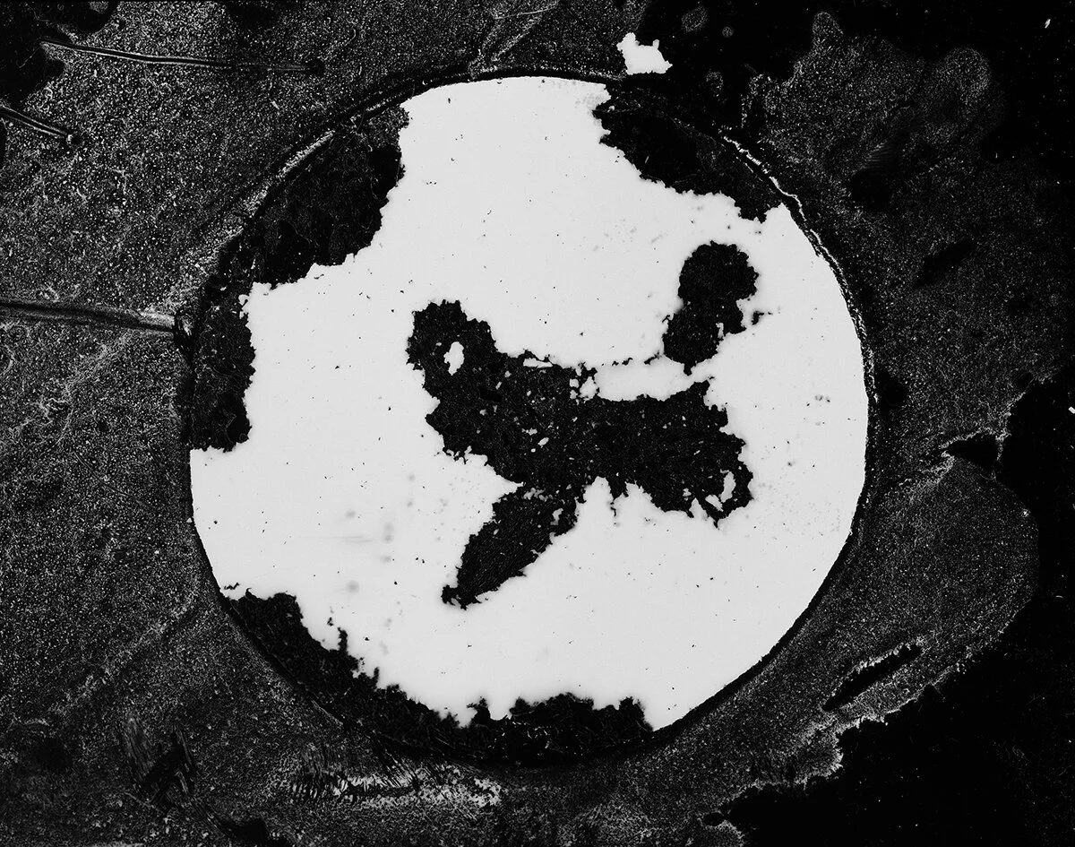 Cliche Verre Print - 4x5" negative exposed via fire (micro explosions) to a plate consisting of Carbon, alcohol, ink, cork and film
